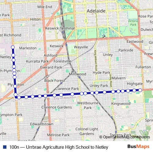 Click here to view the nearest 100n - Urrbrae Agriculture High School to Netley bus stop.