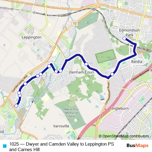 Bus 1025 - Dwyer and Camden Valley to Leppington PS and Carnes Hill in Liverpool: Stops & Timetable