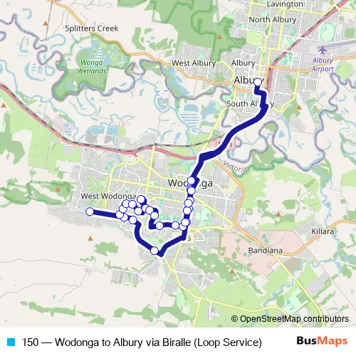 Click here to view the nearest 150 - Wodonga to Albury via Biralle (Loop Service) bus stop.