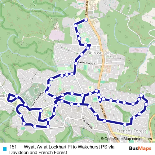 Bus 151 - Wyatt Av at Lockhart Pl to Wakehurst PS via Davidson and French Forest: Full Schedule in Sydney