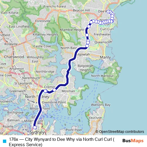 Bus 176x - City Wynyard to Dee Why via North Curl Curl (Express Service) in Sydney: Stops & Timetable