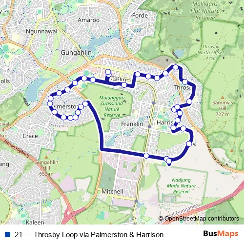 Click here to view the nearest 21 - Throsby Loop via Palmerston & Harrison bus stop.