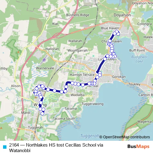 Click here to view the nearest 2164 - Northlakes HS tost Cecilias School via Watanobbi bus stop.