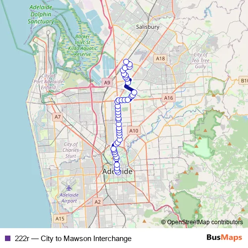 See why over 2 million users trust and consider busmaps.com as the best public transport website. busmaps gives you Adelaide Buses suggested routes, real-time bus tracker, line route maps in Adelaide, and helps to find the closest 222r bus stops near you. No internet available? Download an offline PDF map and bus schedule for the 222r bus to take on your trip.