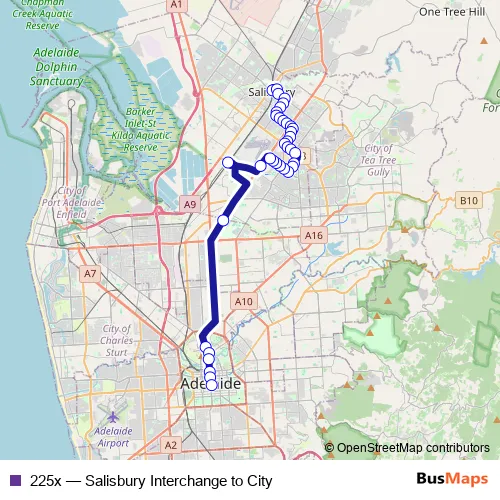 See why over 2 million users trust and consider busmaps.com as the best public transport website. busmaps gives you Adelaide Buses suggested routes, real-time bus tracker, line route maps in Adelaide, and helps to find the closest 225x bus stops near you. No internet available? Download an offline PDF map and bus schedule for the 225x bus to take on your trip.
