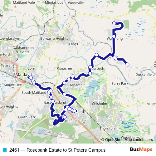 Bus 2461 - Rosebank Estate to St Peters Campus: Full Schedule in Maitland