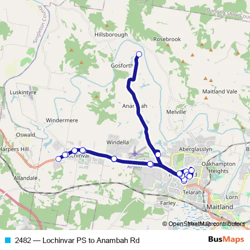 Bus 2482 - Lochinvar PS to Anambah Rd: Full Schedule in Maitland