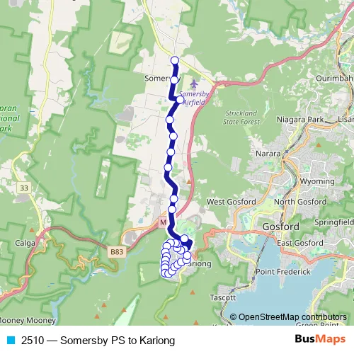 Click here to view the nearest 2510 - Somersby PS to Kariong bus stop.