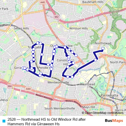 Click here to view the nearest 2528 - Northmead HS to Old Windsor Rd after Hammers Rd via Girraween Hs bus stop.
