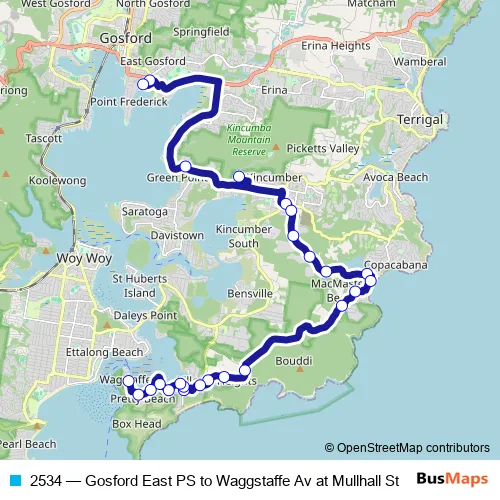 See why over 2 million users trust and consider busmaps.com as the best public transport website. busmaps gives you Ettalong Buses suggested routes, real-time bus tracker, line route maps in Ettalong, and helps to find the closest 2534 bus stops near you. No internet available? Download an offline PDF map and bus schedule for the 2534 bus to take on your trip.