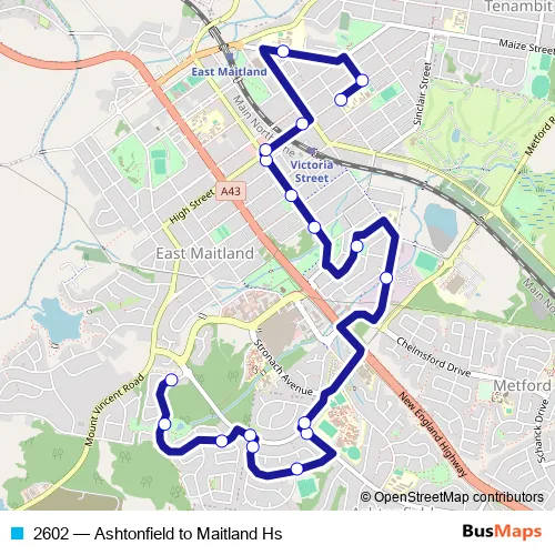 Click here to view the nearest 2602 - Ashtonfield to Maitland Hs bus stop.