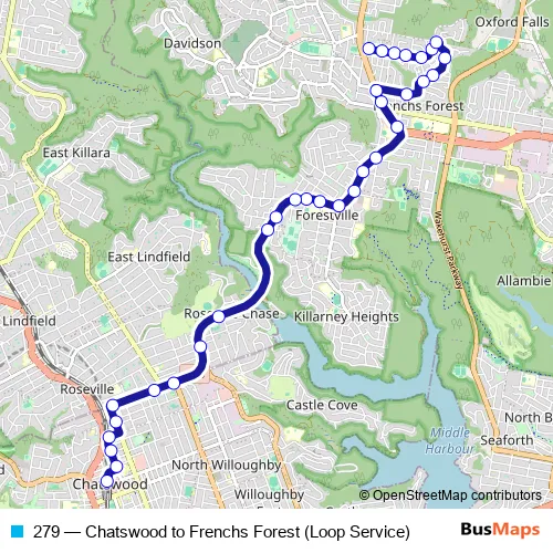 Click here to view the nearest 279 - Chatswood to Frenchs Forest (Loop Service) bus stop.