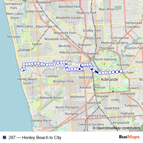 See why over 2 million users trust and consider busmaps.com as the best public transport website. busmaps gives you Adelaide Buses suggested routes, real-time bus tracker, line route maps in Adelaide, and helps to find the closest 287 bus stops near you. No internet available? Download an offline PDF map and bus schedule for the 287 bus to take on your trip.