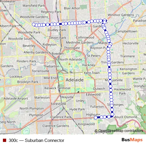 See why over 2 million users trust and consider busmaps.com as the best public transport website. busmaps gives you Adelaide Buses suggested routes, real-time bus tracker, line route maps in Adelaide, and helps to find the closest 300c bus stops near you. No internet available? Download an offline PDF map and bus schedule for the 300c bus to take on your trip.