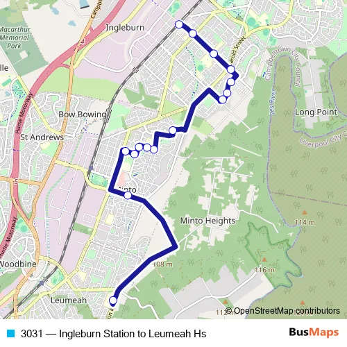 Click here to view the nearest 3031 - Ingleburn Station to Leumeah Hs bus stop.