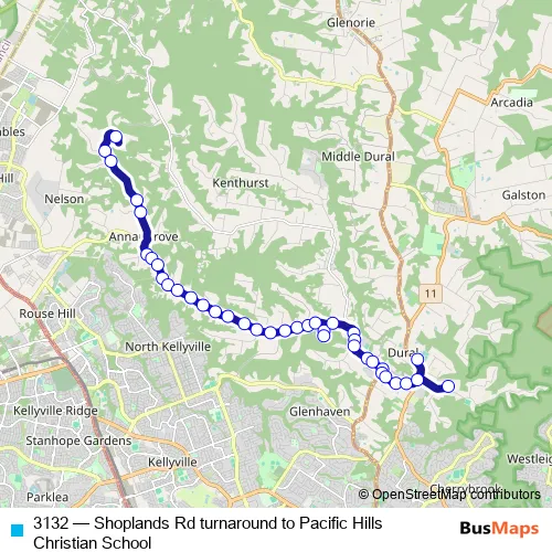 Bus 3132 - Shoplands Rd turnaround to Pacific Hills Christian School: Full Schedule in Parramatta