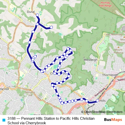 Click here to view the nearest 3188 - Pennant Hills Station to Pacific Hills Christian School via Cherrybrook bus stop.