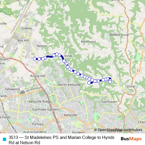 Click here to view the nearest 3513 - St Madeleines PS and Marian College to Hynds Rd at Nelson Rd bus stop.