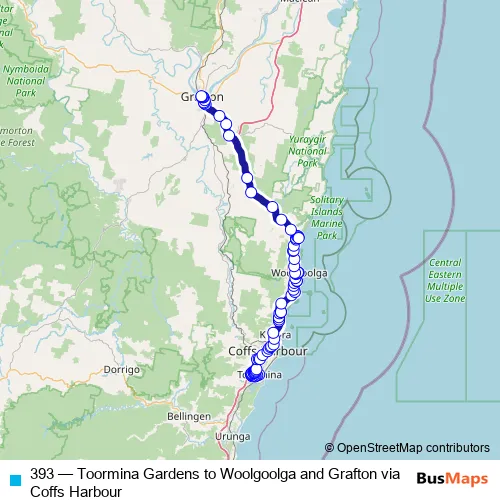 Click here to view the nearest 393 - Toormina Gardens to Woolgoolga and Grafton via Coffs Harbour bus stop.