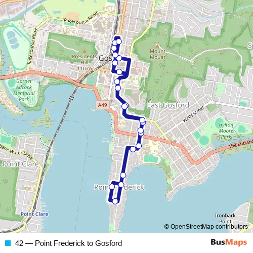 Bus 42 - Point Frederick to Gosford in North Gosford: Stops & Timetable