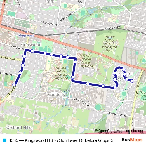 Click here to view the nearest 4535 - Kingswood HS to Sunflower Dr before Gipps St bus stop.