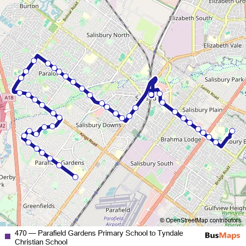 Bus 470 - Parafield Gardens Primary School to Tyndale Christian School Schedule in Adelaide
