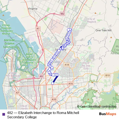 Bus 482 - Elizabeth Interchange to Roma Mitchell Secondary College in Adelaide: Stops & Timetable