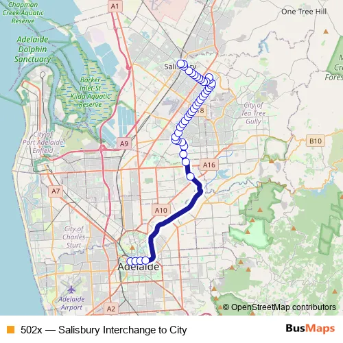 See why over 2 million users trust and consider busmaps.com as the best public transport website. busmaps gives you Adelaide Buses suggested routes, real-time bus tracker, line route maps in Adelaide, and helps to find the closest 502x bus stops near you. No internet available? Download an offline PDF map and bus schedule for the 502x bus to take on your trip.