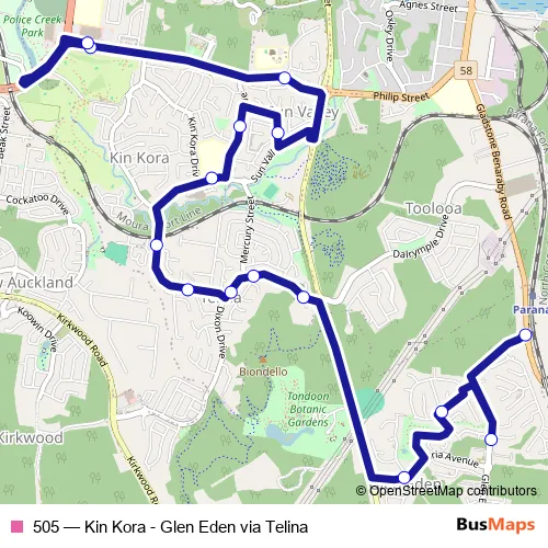 Click here to view the nearest 505 - Kin Kora - Glen Eden via Telina bus stop.