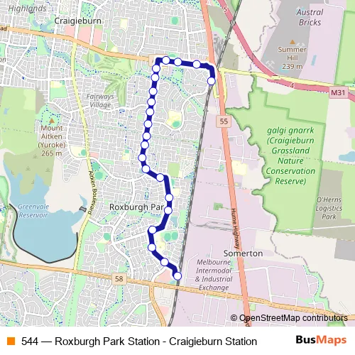 Bus 544 - Roxburgh Park Station - Craigieburn Station in Melbourne: Stops & Timetable