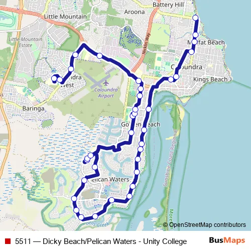 Bus 5511 - Dicky Beach/Pelican Waters - Unity College: Full Schedule in Caloundra