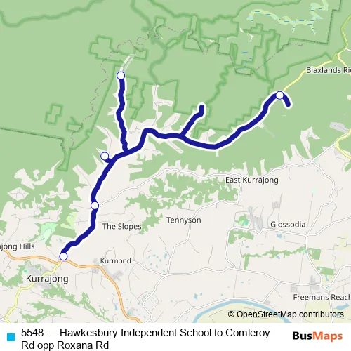 Click here to view the nearest 5548 - Hawkesbury Independent School to Comleroy Rd opp Roxana Rd bus stop.
