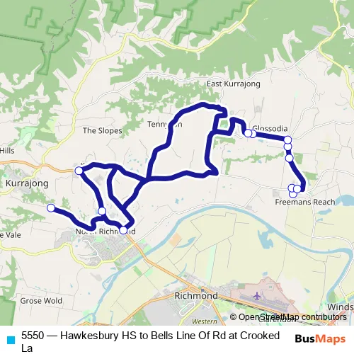 Bus 5550 - Hawkesbury HS to Bells Line Of Rd at Crooked La in Wilberforce: Stops & Timetable