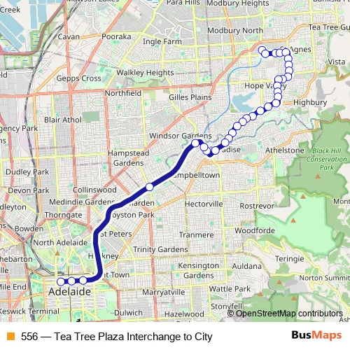 See why over 2 million users trust and consider busmaps.com as the best public transport website. busmaps gives you Adelaide Buses suggested routes, real-time bus tracker, line route maps in Adelaide, and helps to find the closest 556 bus stops near you. No internet available? Download an offline PDF map and bus schedule for the 556 bus to take on your trip.