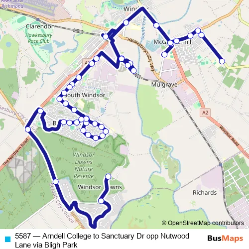 Click here to view the nearest 5587 - Arndell College to Sanctuary Dr opp Nutwood Lane via Bligh Park bus stop.