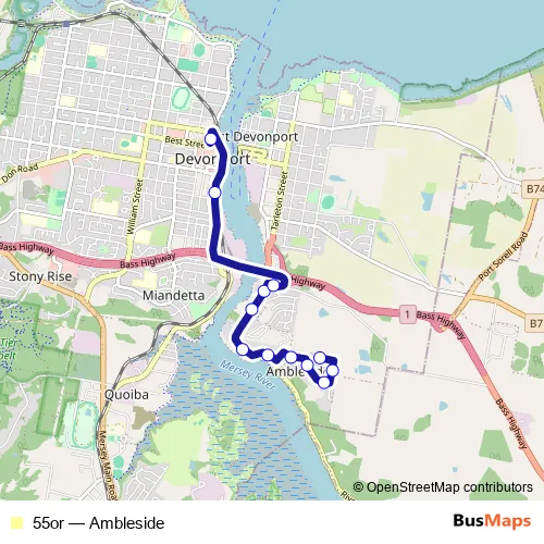 See why over 2 million users trust and consider busmaps.com as the best public transport website. busmaps gives you East Devonport Buses suggested routes, real-time bus tracker, line route maps in East Devonport, and helps to find the closest 55or bus stops near you. No internet available? Download an offline PDF map and bus schedule for the 55or bus to take on your trip.