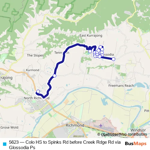 Click here to view the nearest 5623 - Colo HS to Spinks Rd before Creek Rdge Rd via Glossodia Ps bus stop.