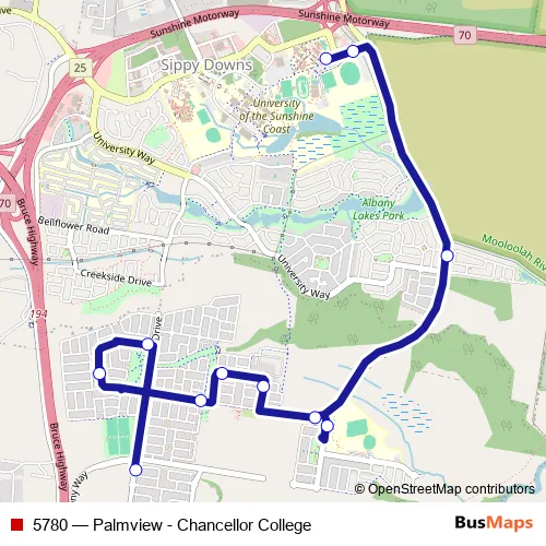 Bus 5780 - Palmview - Chancellor College Schedule in Sunshine Coast