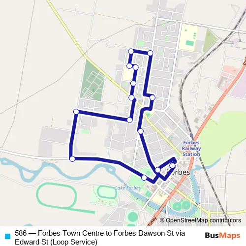 Click here to view the nearest 586 - Forbes Town Centre to Forbes Dawson St via Edward St (Loop Service) bus stop.