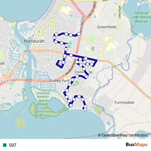 See why over 2 million users trust and consider busmaps.com as the best public transport website. busmaps gives you Mandurah Buses suggested routes, real-time bus tracker, line route maps in Mandurah, and helps to find the closest 597 bus stops near you. No internet available? Download an offline PDF map and bus schedule for the 597 bus to take on your trip.