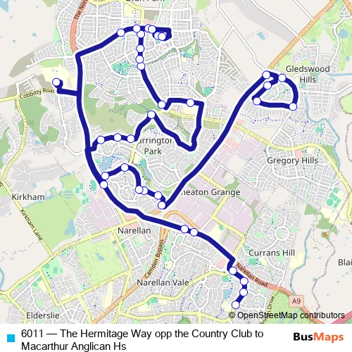 Click here to view the nearest 6011 - The Hermitage Way opp the Country Club to Macarthur Anglican Hs bus stop.