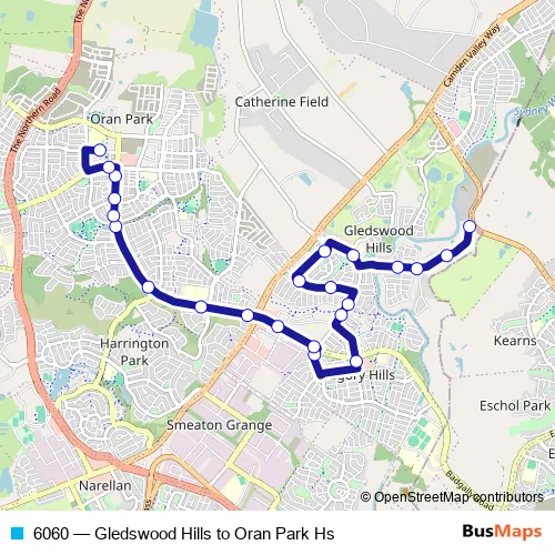 Click here to view the nearest 6060 - Gledswood Hills to Oran Park Hs bus stop.