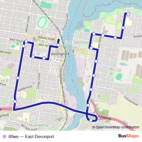 See why over 2 million users trust and consider busmaps.com as the best public transport website. busmaps gives you East Devonport Buses suggested routes, real-time bus tracker, line route maps in East Devonport, and helps to find the closest 60we bus stops near you. No internet available? Download an offline PDF map and bus schedule for the 60we bus to take on your trip.