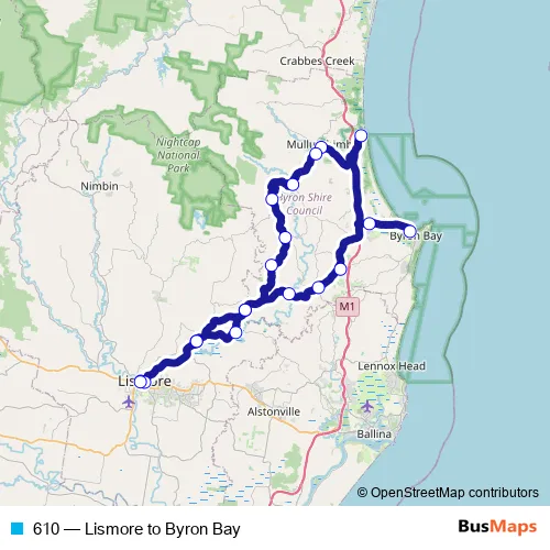 Click here to view the nearest 610 - Lismore to Byron Bay bus stop.
