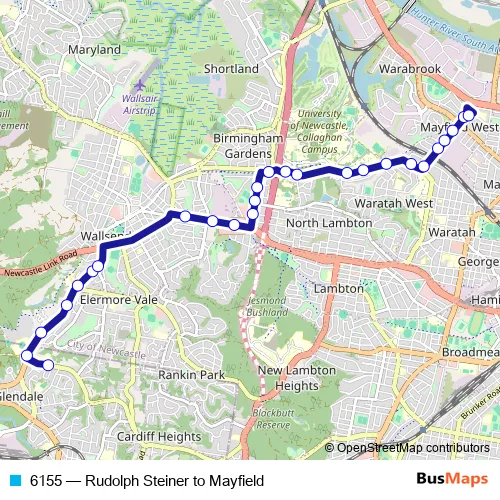 Bus 6155 - Rudolph Steiner to Mayfield: Full Schedule in Newcastle