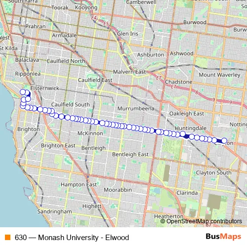Click here to view the nearest 630 - Monash University - Elwood bus stop.