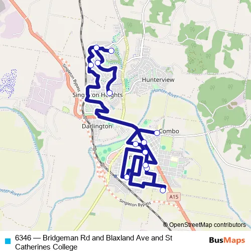 The first stop of the 6346 bus route is Singleton Heights Public School, Blaxland Av and the last stop is St Catherine's Catholic College, Queen St. 6346 (Bridgeman Rd and Blaxland Ave and St Catherines College) is operational during entre semana.