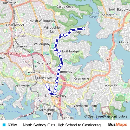 Click here to view the nearest 639w - North Sydney Girls High School to Castlecrag bus stop.