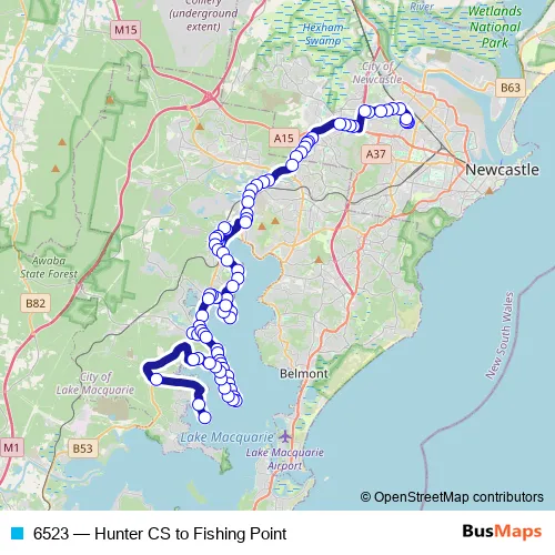 Bus 6523 - Hunter CS to Fishing Point Schedule in Newcastle