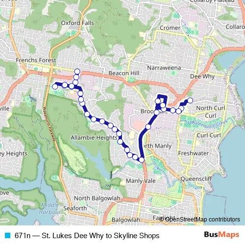 Bus 671n - St. Lukes Dee Why to Skyline Shops: Full Schedule in Sydney